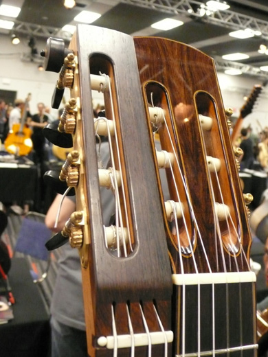 Après des études à Lille et un stage chez Paul Doyle, luthier à Galway, en Irlande, Hugo Cuvilliez revient en France et se spécialise dans la fabrication de guitares classiques de concert. On pourra voir deux de ces guitares, dont une avec théorbure, un accessoire qui permet d'ajouter quatre cordes à vide pour jouer le répertoire du luth ou bien des pièces contemporaines pour guitare à dix cordes.