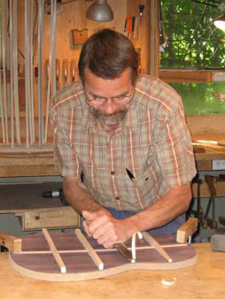 Le maître luthier Sergei de Jonge a commencé sa carrière il y a 38 ans comme apprenti de Jean Larrivée. Depuis, il crée des guitares de la meilleure qualité, en privilégiant l'évolution de son art dans le but d'adapter toujours mieux ses instruments aux besoins spécifiques de chaque musicien. On verra deux guitares à cordes d'acier, une classique et une jazz à cordes de nylon.