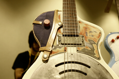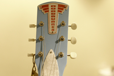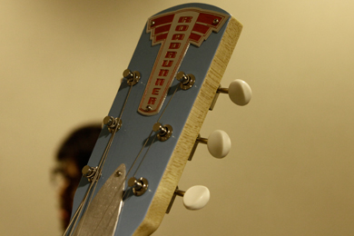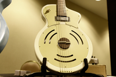 Laurent Hassoun dit Roadrunner est probablement le luthier le plus rock'n roll que j'ai pu croiser depuis que j'arpente les salons et les ateliers de lutherie. C'est la troisième édition du salon de guitare de Montréal pour Laurent et cette année, il s'est lâché avec trois exemplaires de son modèle Aéro. Une mini guitare dobro solid body équipée d'un micro (K Amstrong ou Benedetti) avec en option une cellule cône schertler.