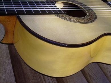 Table en épicéa Allemand, fond et éclisses en cyprès Méditérrannéen,