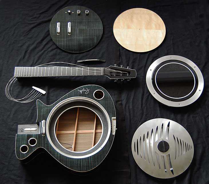 Le corps et les disques (acoustique et électrique) sont en érable des Alpes Suisse.