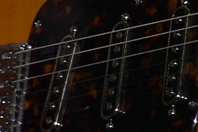 2 - Sur la deuxième vidéo Micros custom ‘benedetti’ (caractéristiques : bridge : 18.8K, middle :17.9K, neck :17.6K aimant terre rare, plot à vis , son  pos 1 : jazz, pos 2 : blues, pos 3 : rock…. plus intermediaires)  objectifs se rapprocher des P90 / cf look,  dans un format strat. Ces micros ont été montés sur le modèle LéoCaster de Jean-Yves Alquier.