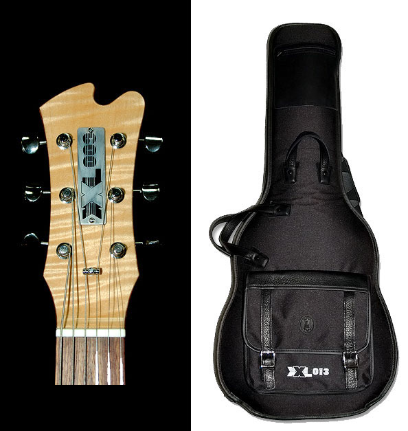 Chaque guitare XXL porte un numéro de série en caractères gras, directement sur le cheviller. Le gigbag inclus est également « marqué » du même numéro de série. |