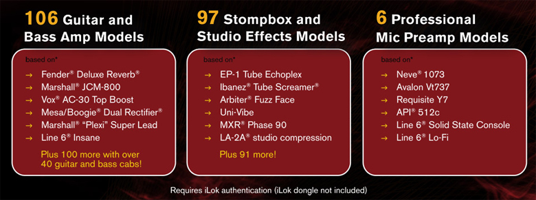 Le Plug-in POD Farm Platinum met à votre disposition les sons des amplis Vintage les plus convoités ainsi que les amplis incontournables pour des enregistrements de qualité professionnelle. Il vous offre 78 amplis guitare, 24 enceintes guitare, 28 amplis basse et 22 enceintes basse, 97 pédales et effets de studio, et 6 préamplis micro de légende.